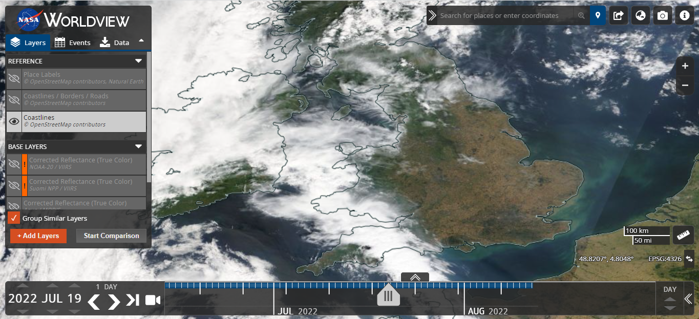 На кадрах из космоса видно, как в коричневый цвет перекрасилась вся Южная, Восточная и восток Северной Англии, а также восток Уэльса и юг Шотландии. Фотографии некоторых знаковых для Великобритании мест, например, Гайд-Парка в Лондоне, также свидетельствуют о сильной засухе, пришедшей в Британию.