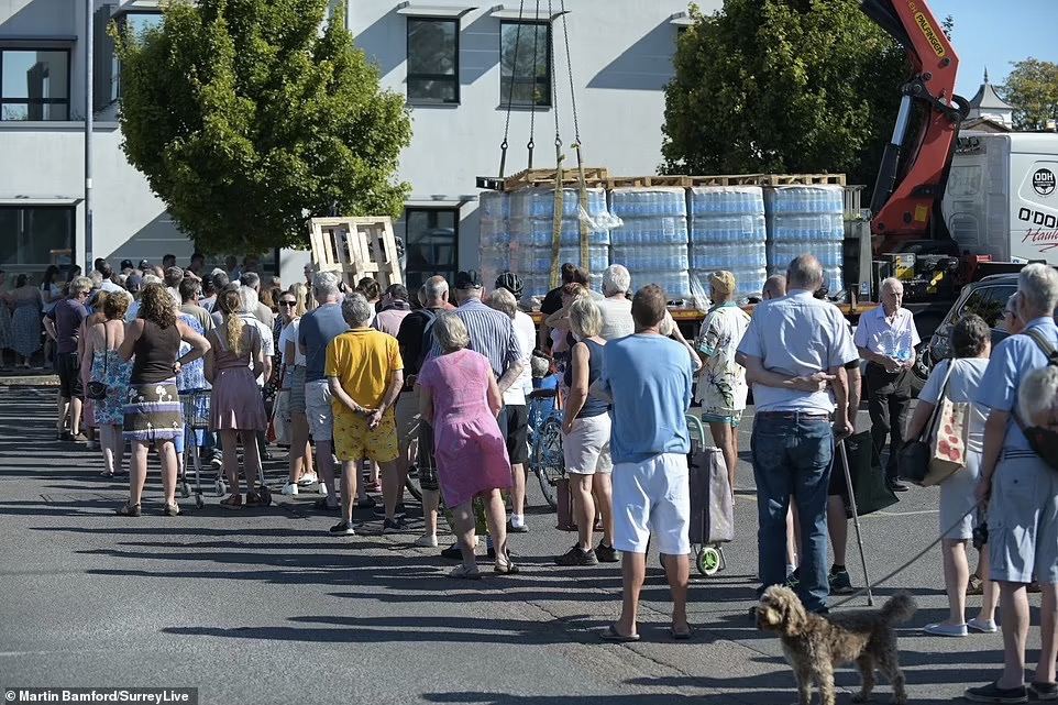 Жители графства Суррей, расположенного на юго-востоке Англии, южнее Лондона, выстроились в очереди за водой из-за сильной засухи, наступившей в Великобритании этим летом, сообщает газета Daily Mail.