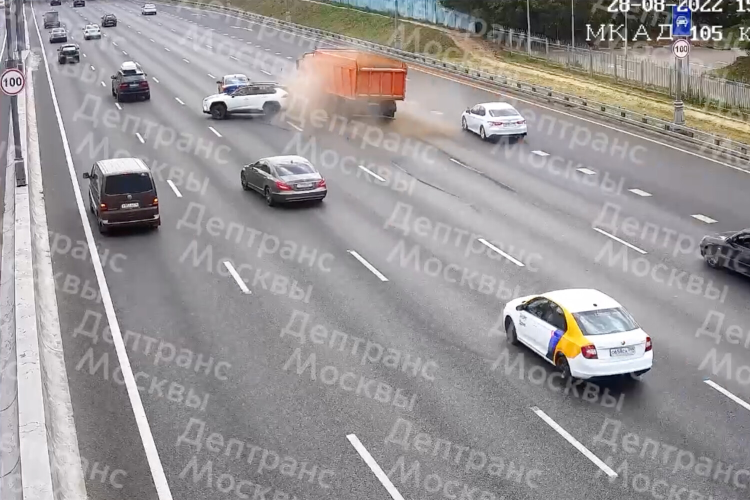 На МКАД водитель каршеринга спровоцировал столкновение грузовика и легковушки