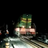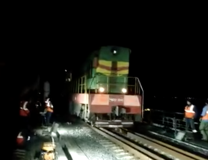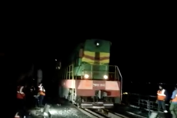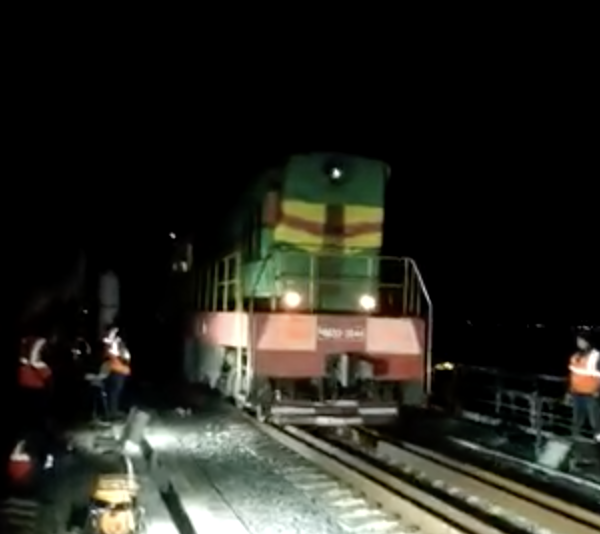 Также министерство опубликовало видео, на котором первый тестовый поезд отправляется по железнодорожному полотну моста.