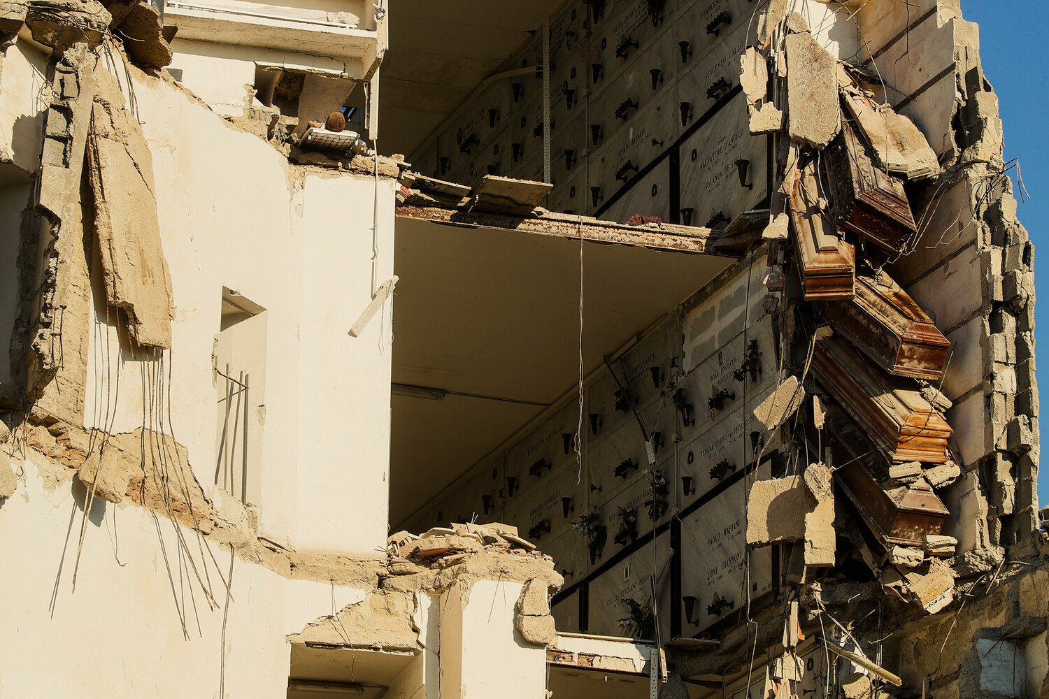 Инцидент произошел 17 октября 2022 года на территории старейшего в городе кладбища Поджореале в районе Порта Балестриери. В результате обрушения не менее 12 гробов с останками умерших буквально повисли в воздухе. К счастью, в этот момент на территории не было посетителей, и никто из людей не пострадал.