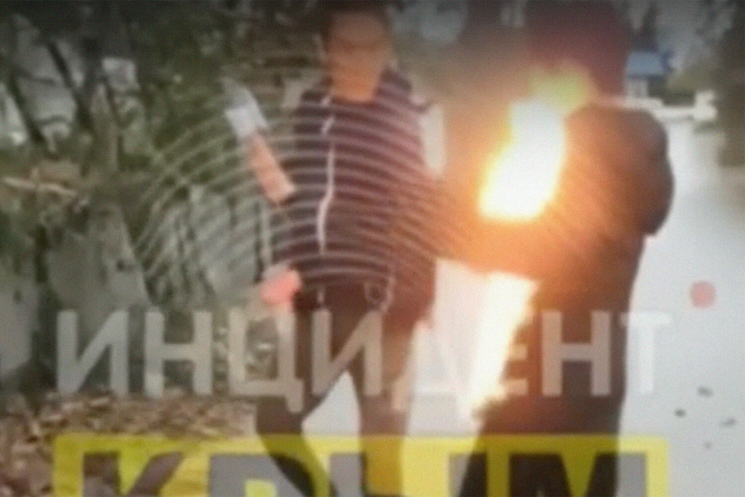 Пламя сразу распространилось по телу мальчика — при этом снимавший происходящее на камеру смеется.