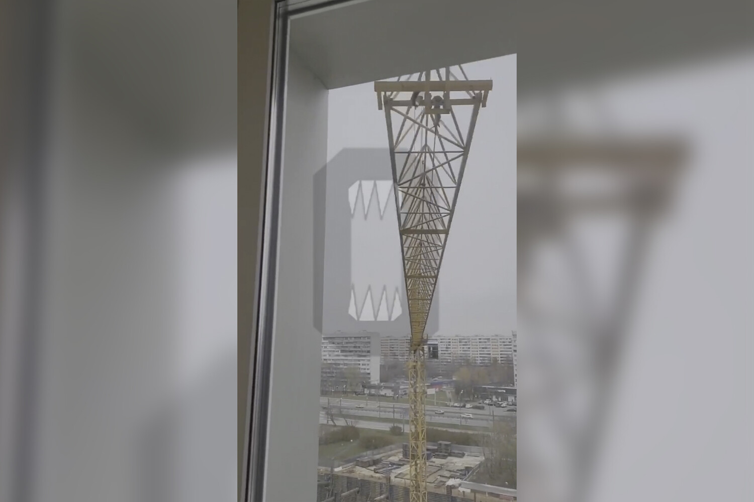 В Москве жители засняли башенный кран, который едва не врезался в их дом