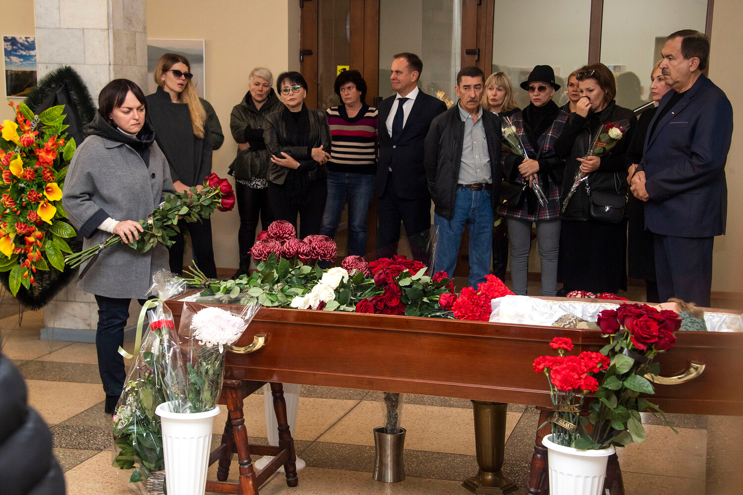 «Это была не ее ошибка, стреляла не она, стрелял другой человек. Одного из этих мы уже нашли, сейчас через некоторое время, дай бог, найдем непосредственно стрелка», — рассказал муж погибшей на церемонии прощания на Троекуровском кладбище.