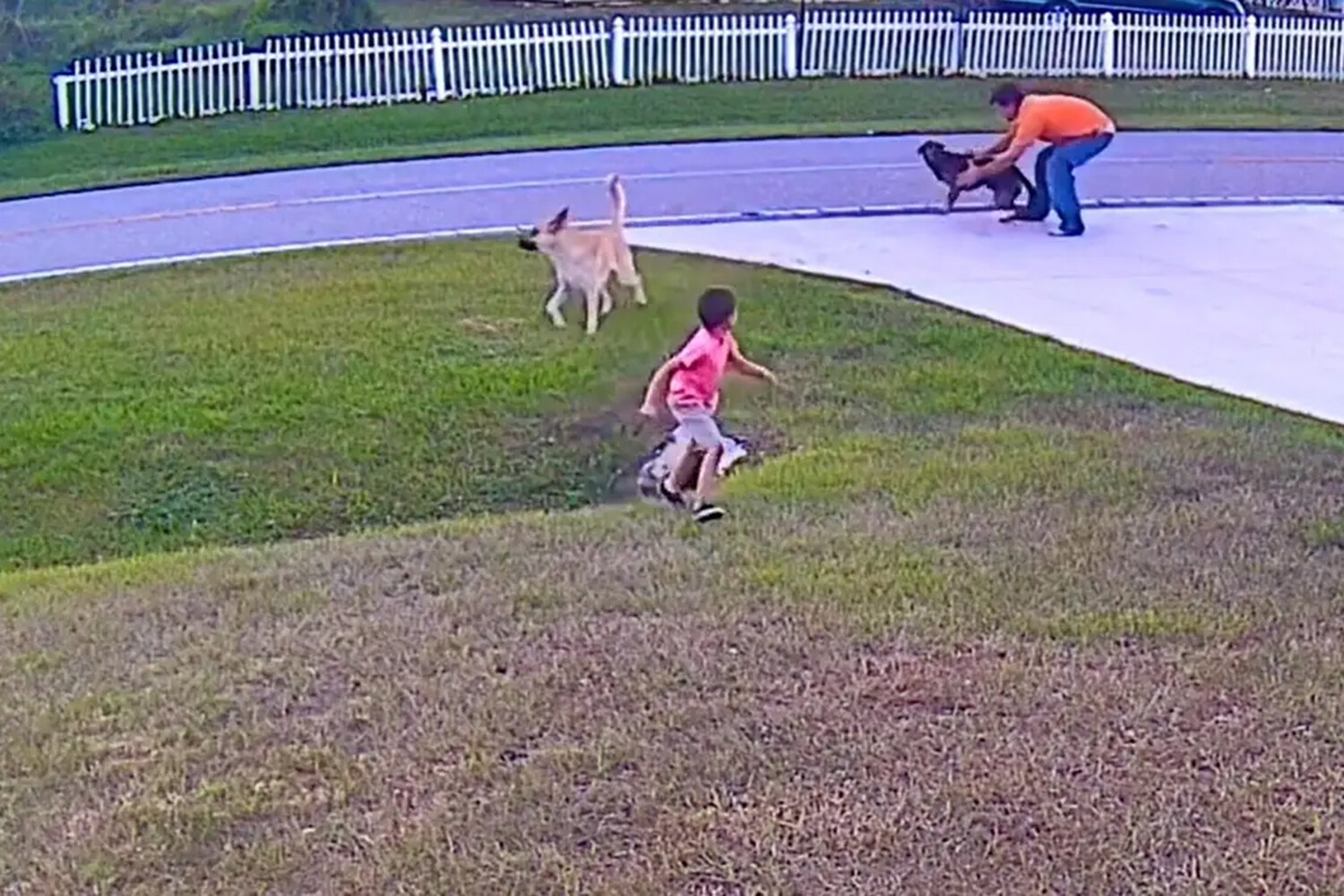 Пес по кличке Танк играл с шестилетним сыном хозяина, когда к ним подошла другая собака. Она внезапно напала на ребенка, но на помощь малышу кинулась овчарка, которая начала защищать человека от агрессивного животного.