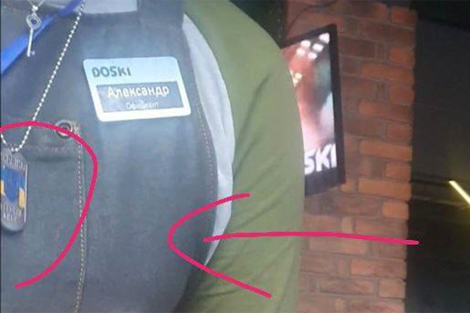 Инцидент произошел в баре DOSKI. За несколько дней до этого посетители бара пожаловались на сотрудника бара, у которого был жетон с изображением флага Украины и ВСУ.