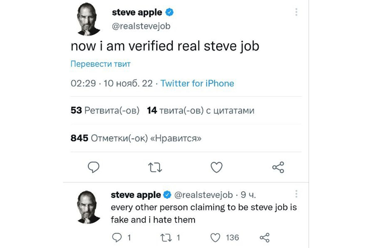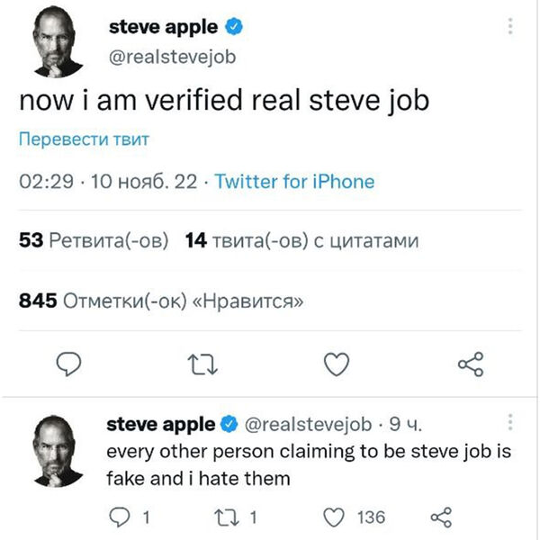 Ранее аккаунты якобы Джорджа Вашингтона, Стива Джобса и Иисуса Христа после реформ нового владельца обзавелись синими галочками.
