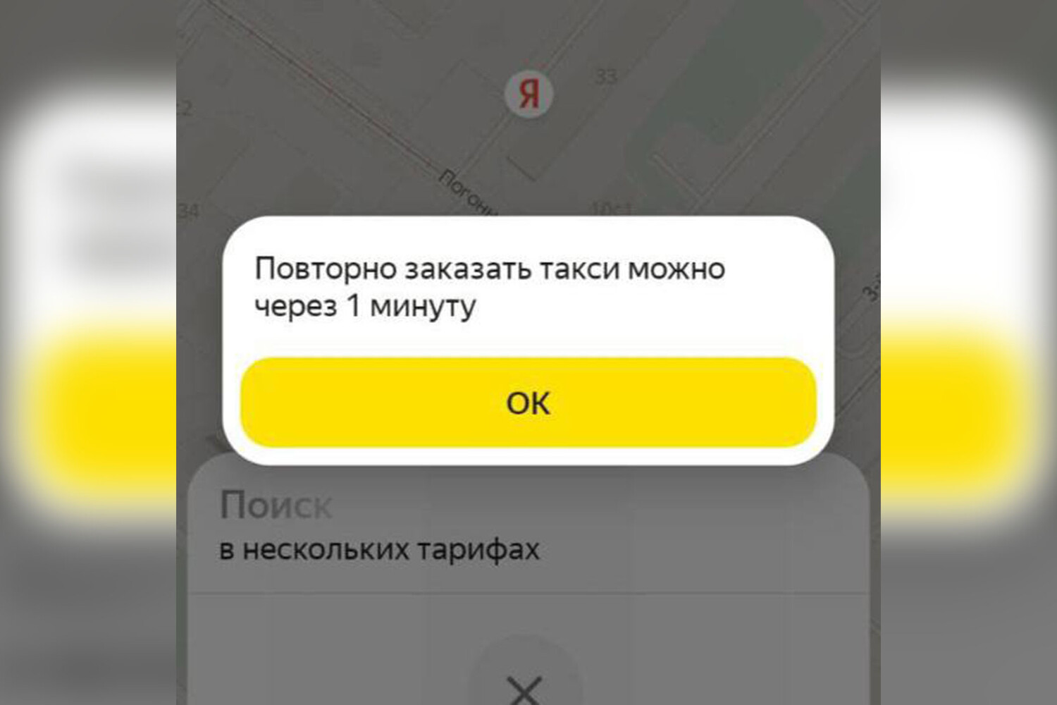 Как сообщает информагентство, при попытке заказать такси на экране устройств появлялась надпись «Повторно заказать такси можно через 1 минуту».
