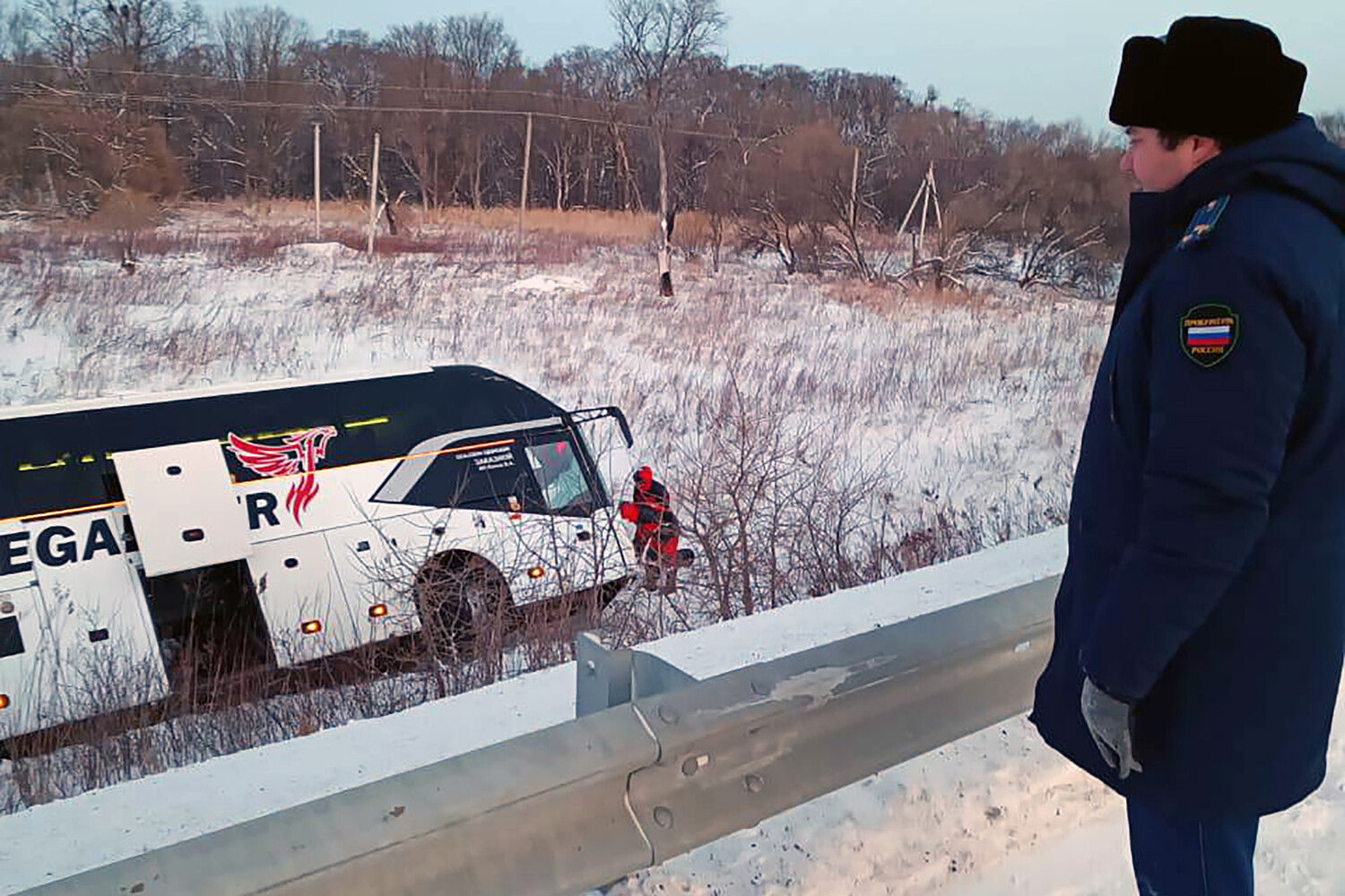 Утром 16 декабря на трассе Хабаровск — Комсомольск-на-Амуре автобус, перевозящий вахтовиков, съехал в кювет и перевернулся.