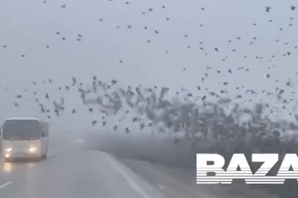 Тысячи птиц, собравшиеся в стаю и кружащие над дорогой, устроили свою пробку на трассе в Краснодарском крае, сообщает Telegram-канал Baza.