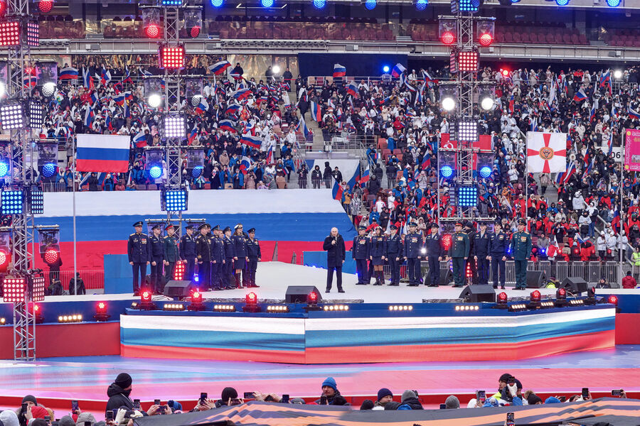 Ранее сообщалось, что 22 февраля на московском стадионе Лужники проходит митинг-концерт, посвященный Дню защитника Отечества. Его посетил президент России Владимир Путин. В своем выступлении он заявил, что прямо сейчас идет бой на исторических территориях РФ.