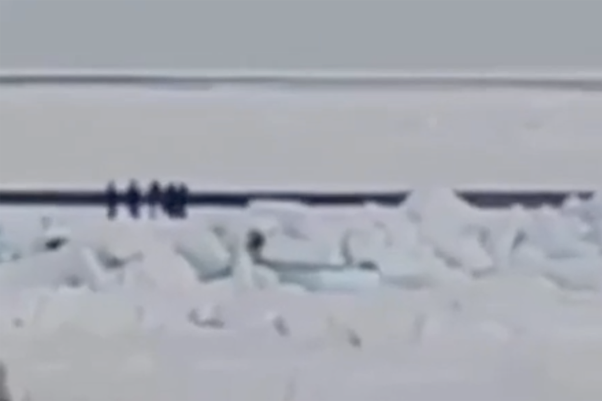 Сообщается, трещина в ледовом поле образовалась на расстоянии 500—600 м от берега, передает RT.