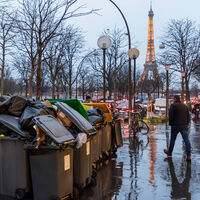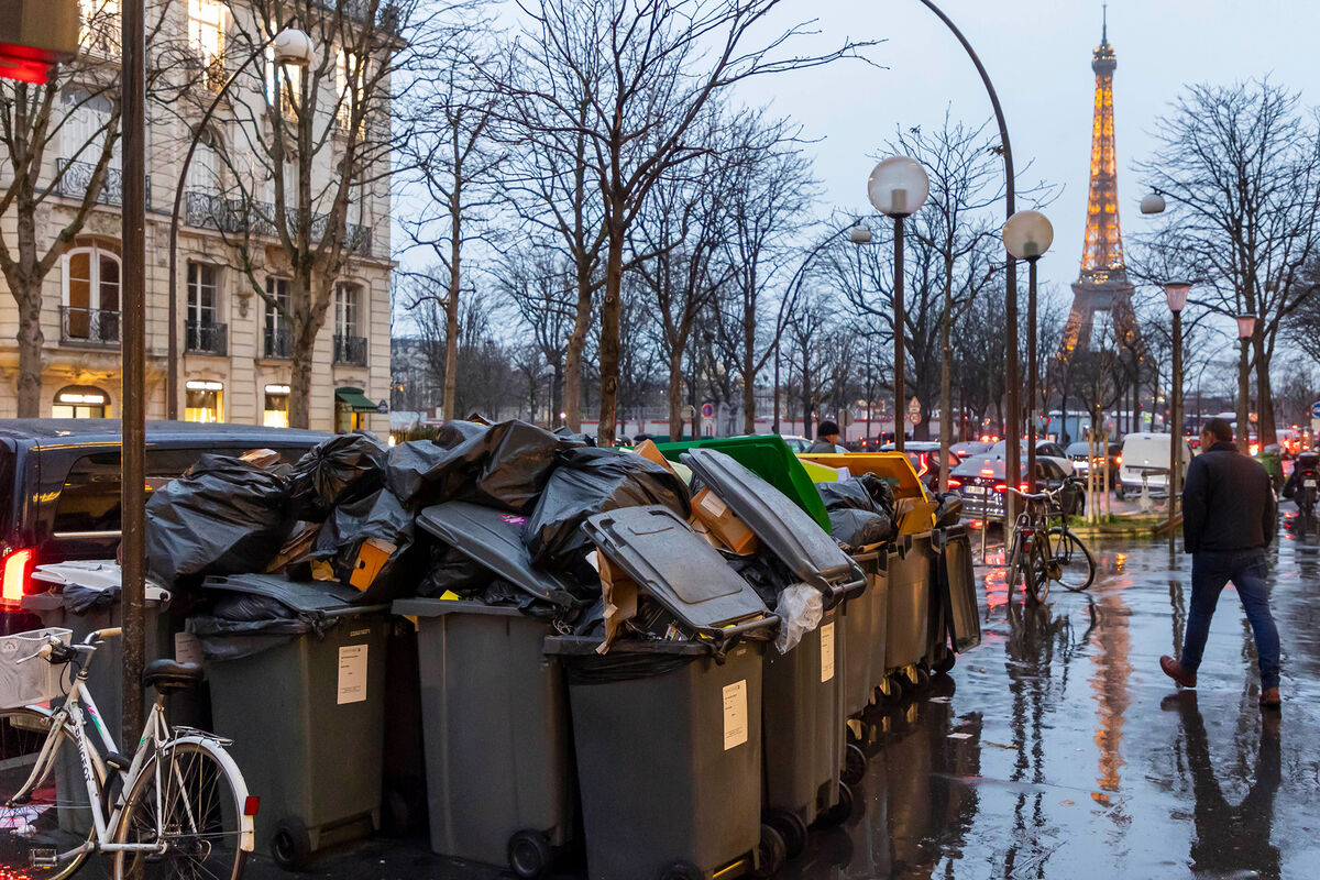 Издание Monde сообщало, что на десятый день забастовки сборщиков мусора на тротуарах Парижа скопилось 7600 тонн мусора.