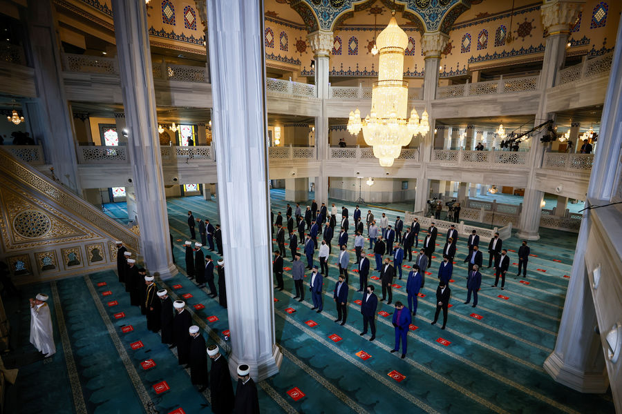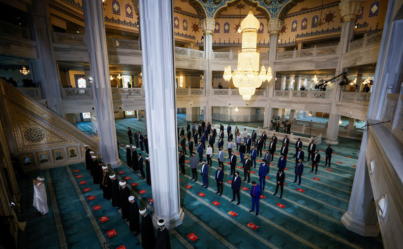 Ранее в Москве у Соборной мечети собрались более 100 тыс. верующих на торжественную молитву.