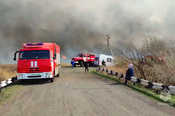 Как подчеркивается, огненный фронт возгорания в регионе достигает 3 км.