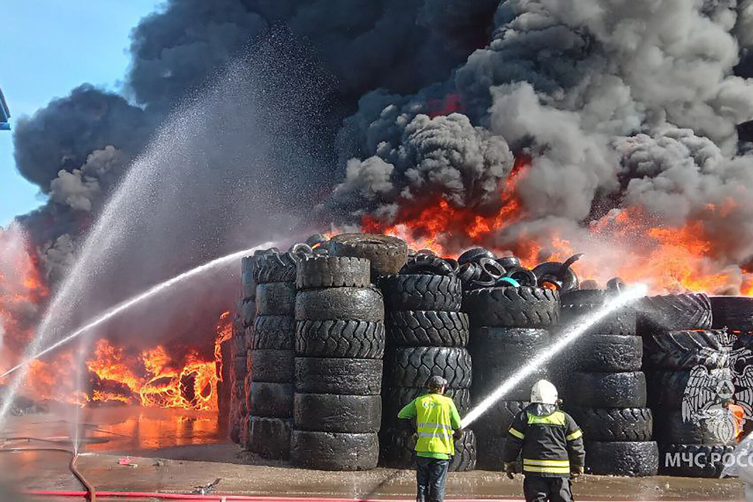 Пожар в подмосковном Дзержинском начался утром 12 мая. Огонь охватил территории складских помещений на площади до 1500 квадратных метров. Как сообщили в МЧС, загорелась восьмиметровая гора покрышек, после чего огонь перекинулся на всю площадку.