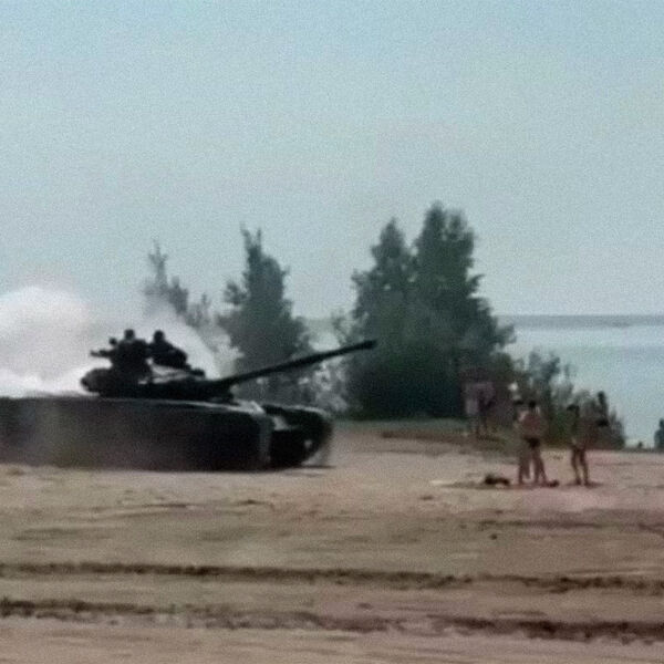 «Купаться и находиться там запрещено. Это нужно в полицию, чтобы полиция людей оттуда убирала. А по поводу танка военного: танк выехал, просто он пробивал, так сказать, дорогу. Скоро там будут учения со спецтехникой. Танк выехал, развернулся и уехал обратно», — объяснил представитель ТВВКИУ.