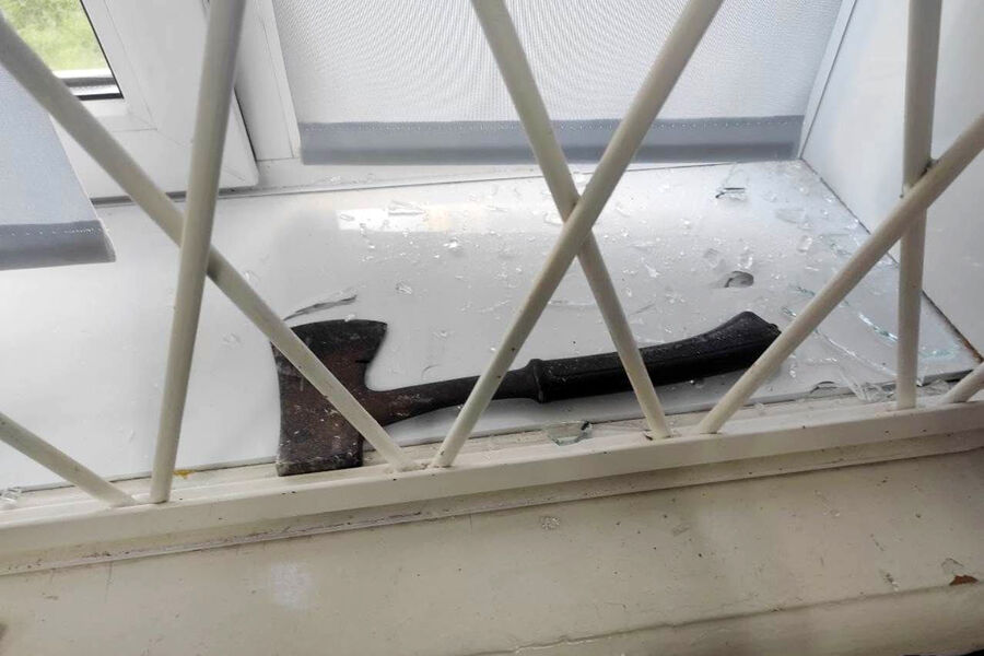 Вечером 12 июля в Выборге местный житель пришел с топором к дому на Приморском шоссе. Он разбил стекла у автомобиля Renault Symbol, принадлежащего его знакомой, а затем попытался попасть холодным оружием в окно квартиры на третьем этаже, в которой проживает женщина. Однако не добросил его до цели и лишь разбил окно детского развивающего центра, расположенного на первом этаже.