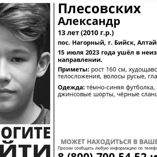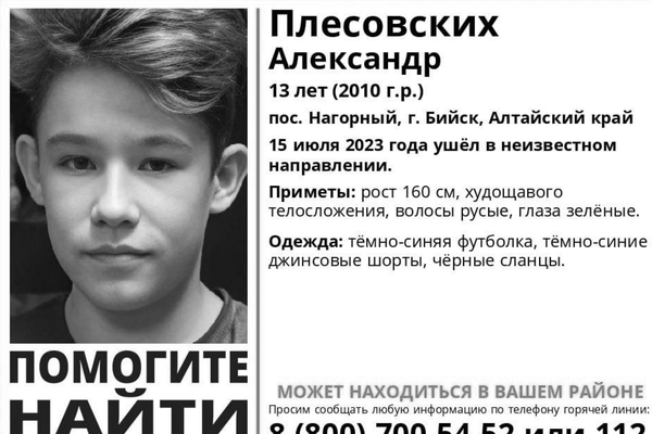 13-летнего подростка искали волонтеры, спасатели и полиция, он пропал 15 июля, школьник вышел из дома в Бийске и не вернулся. Поисковые отряды обследовали несколько водоемов, мальчика искали с помощью беспилотников.