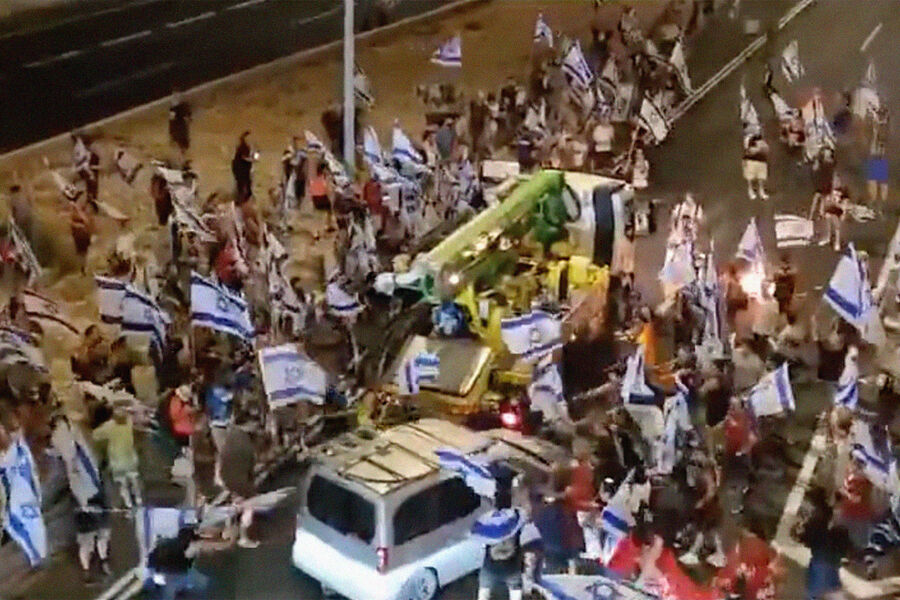 На распространенном в соцсетях видео видно, что автомобиль въезжает в толпу людей, перекрывших шоссе 533 в знак протеста против судебной реформы.