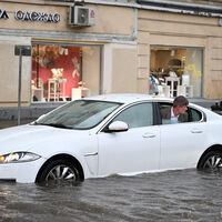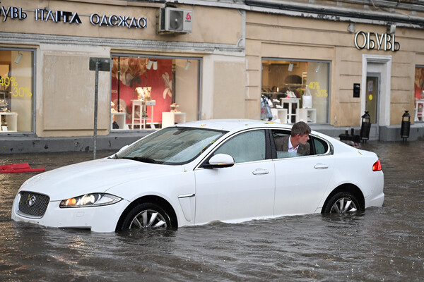 Некоторые дороги в столице превратились в реки. В ряде районов машины на стоянках наполовину подтоплены. Москвичи без транспортных средств передвигаются по колено в воде.
