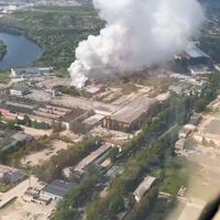 По данным Mash, на предприятии загорелся цех по производству кислородных аккумуляторов. Пожару был присвоен второй ранг опасности.