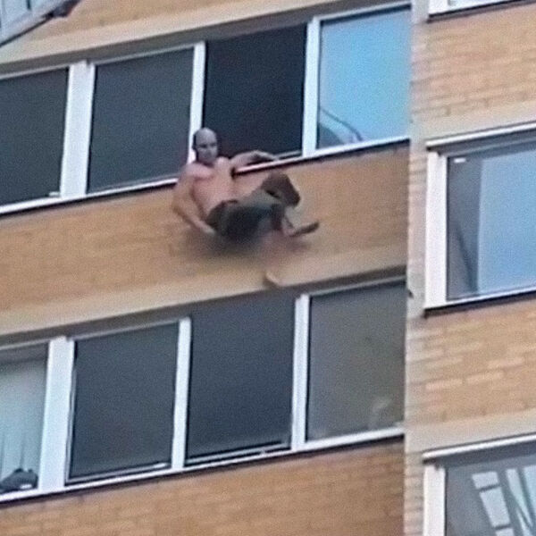 Сотрудникам экстренных служб после опасного трюка мужчины удалось уговорить его спуститься вниз по пожарной лестнице. О том, почему изначально мужчина оказался на краю балкона 11-го этажа, на данный момент ничего не известно.
