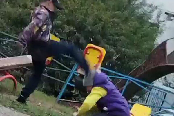 Роликом, который сняли дети, поделилась в социальных сетях их мать, на кадрах подросток избивает ребенка помладше, он бьет мальчика, лежащего на земле, ногами по голове, пинает и прыгает у него на спине.