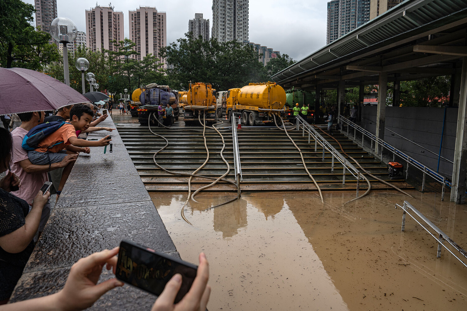 Власти объявили грозовое предупреждение и обратились к местным жителям, попросив их не покидать свои дома. В SCMP сообщили, что также из-за наводнений городские власти 8 сентября приостановили занятия в школах.