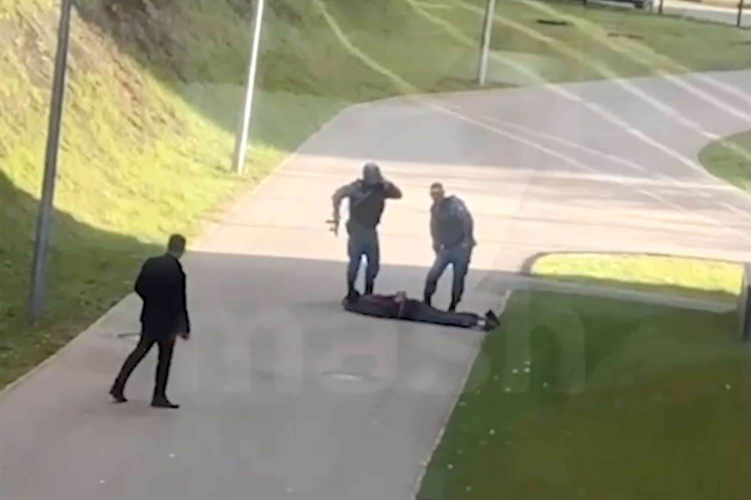 На место прибыли сотрудники Росгвардии, которые обезвредили мужчину. Задержание злоумышленника записала на видео одна из учениц школы, которая увидела происходящее из окна.