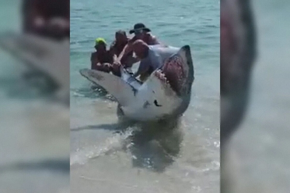Инцидент произошел в штате Флорида. На курорте Пенсакола-Бич отдыхающие заметили хищницу, которая быстро приблизилась к берегу и упала на песок. Сначала она пыталась вернуться в воду, но сделать это у акулы не получилось. В результате муж снимавшей происходящее женщины и другие отдыхающие решили помочь.