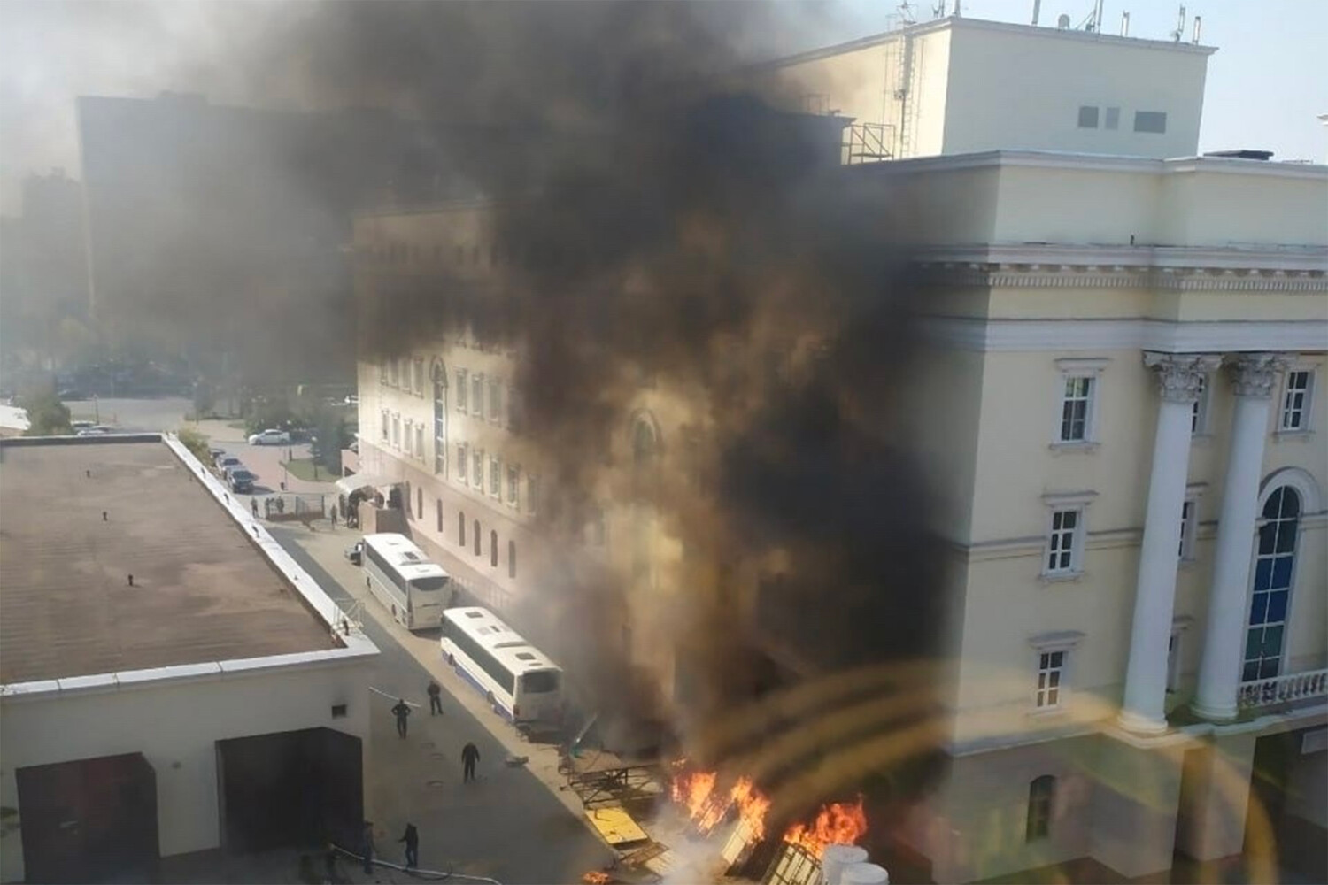 Очевидцы активно делятся видео с места событий. На роликах заметен густой дым, который исходит из одной из боковых стен здания. По словам авторов материалов, загорелся реквизит.