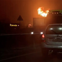 На видео очевидцев заметен большой взрыв, который предварительно произошел на Промышленной улице. Огонь охватил 200 квадратных метров. Огонь вспыхнул из-за крупных емкостей с легковоспламеняющейся жидкостью.