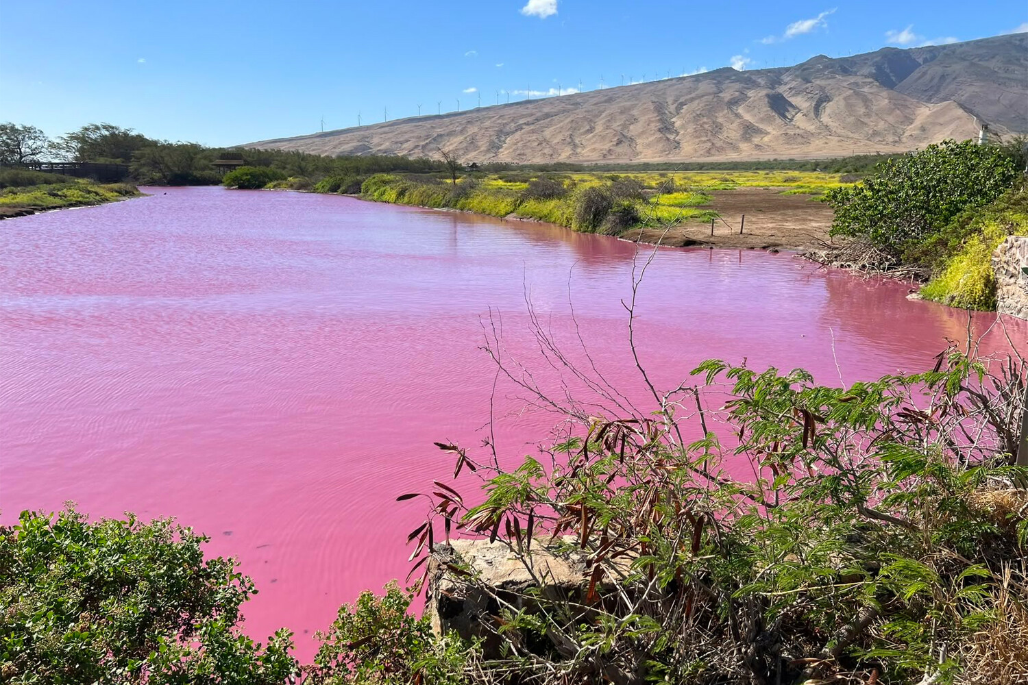 Жители острова Мауи рассказали, что вода в озере Кеалия приобрела необычный розово-фиолетовый оттенок, чего раньше никогда не было. Служба охраны рыбы и дикой природы США подтвердила, что пруд находится в таком состоянии уже больше двух недель.