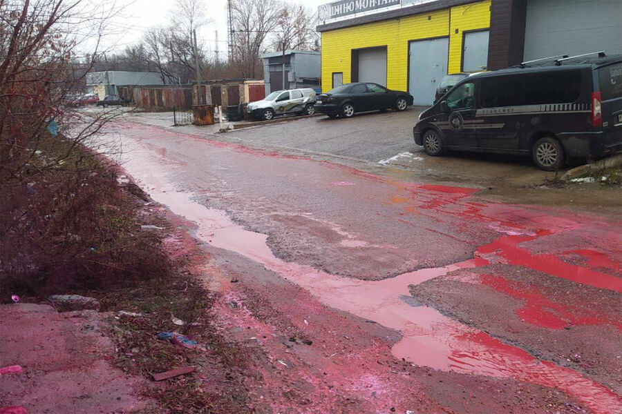 В ведомстве рассказали, что, по предварительным данным, причиной появления красных ручьев стал краситель Родамин C, который применяется как добавка для лекарств, пищевых продуктов, косметики и тканей, распыление которого, вероятно, произошло во время разгрузки.