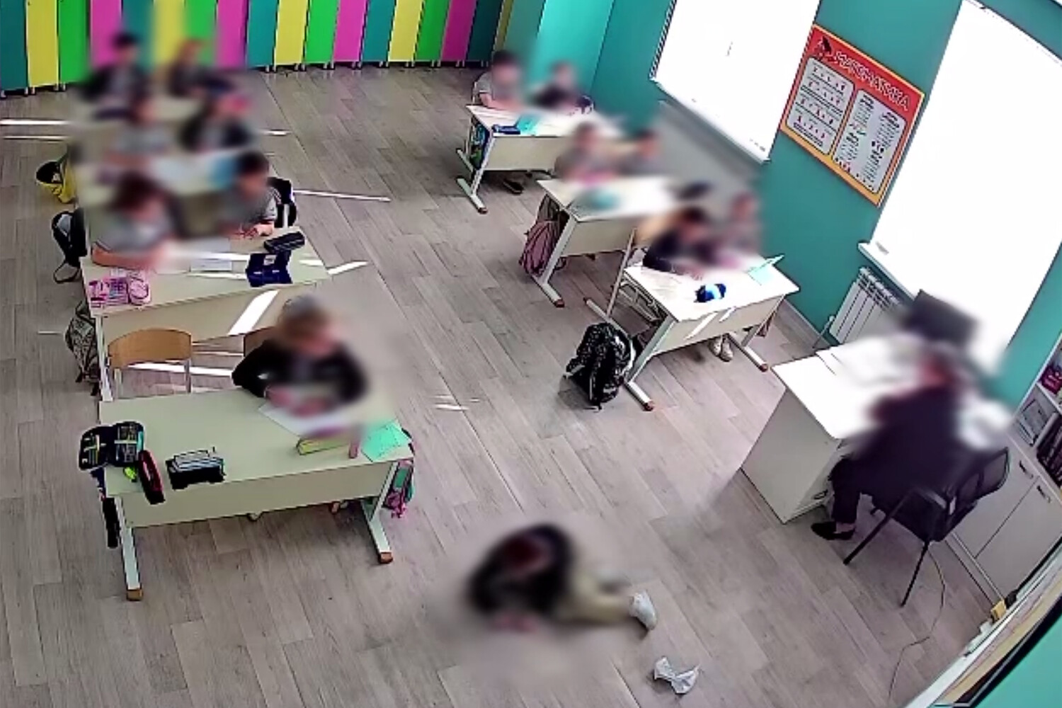 После этого учительница называет класс «бестолковыми» и требует, чтобы пострадавший «встал» и «не валялся».