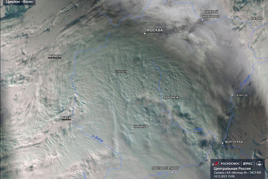 В госкорпорации отметили, что фото сделал спутник «Метеор-М», и рассказали, что «Ваня» возник над Молдавией, после этого в районе Балтийского моря слился с атлантическим циклоном и обрушился на столичный регион. В Московской области зафиксировали самый снежный день за последние 60 лет, сугробы выросли до полуметра.