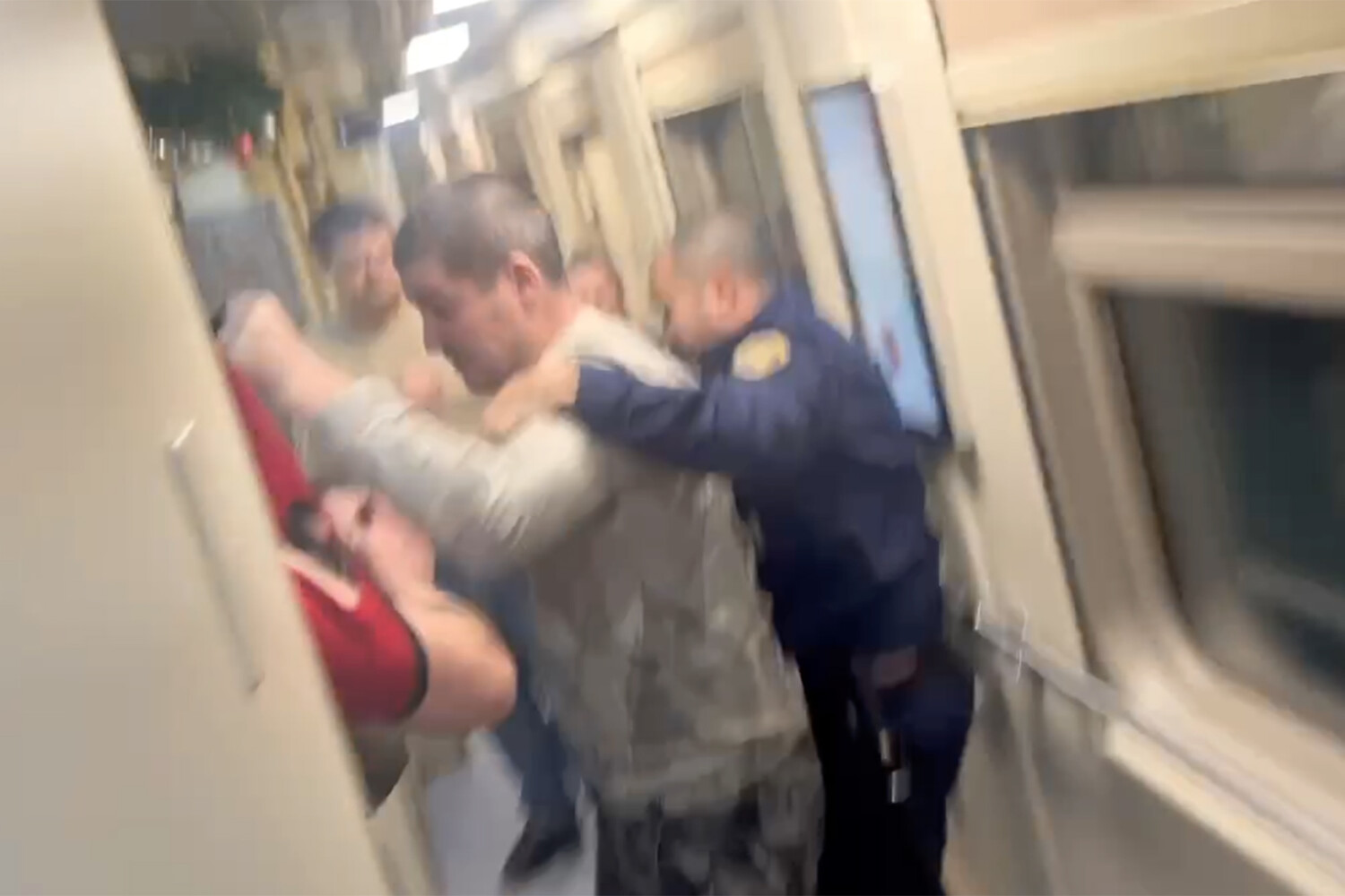 По словам девушки, мужчина, на которого напал агрессор, не отвечал ему, а просто уворачивался от ударов. Также в вагоне-ресторане находился боец СВО с забинтованной рукой, который периодически демонстрировал отсутствие пальцев на ней. Военный тоже в результате присоединился к потасовке.