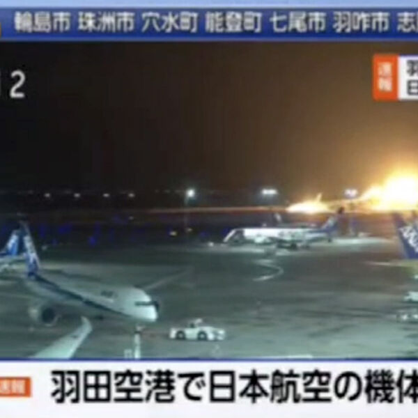 По данным телеканала, всех пассажиров и членов экипажа самолета Japan Airlines удалось эвакуировать.