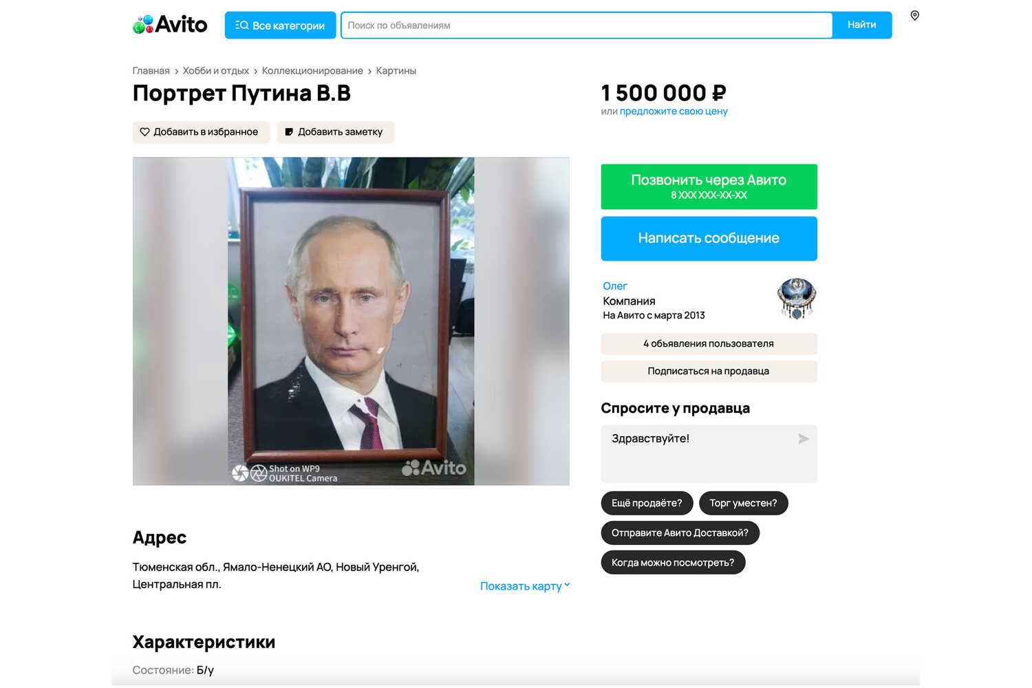 В Новом Уренгое продают портрет президента России, его владелец планирует отдать вырученные с продажи деньги на нужды СВО. На объявление, опубликованное на «Авито», обратило внимание агентство Ura.ru.