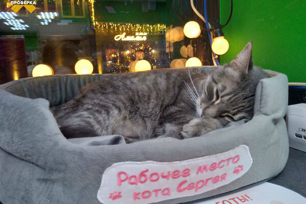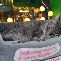 Сергей «проработал» в магазине «Ю-маркет экспресс» на Курортном проспекте Зеленоградска более двух лет. Рабочим местом кота была оборудованная лежанка. Сергей был популярен среди туристов.