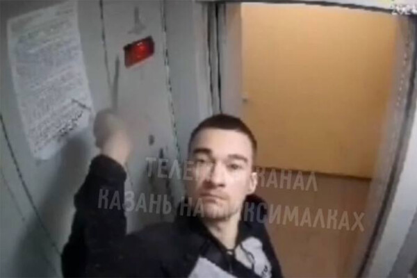 В Казани мужчина бросается с ножом на своих соседей под камерами видеонаблюдения. Записи с них опубликовал Telegram-канал «Казань на максималках».
