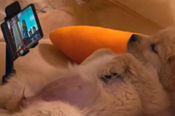 Популярность в соцсетях получил щенок золотистого ретривера. Хозяева собаки сфотографировали питомца, пока тот лежал на диване животом кверху и смотрел видео на телефоне. Чтобы животному было удобнее, владельцы сделали для телефона специальную подставку.
