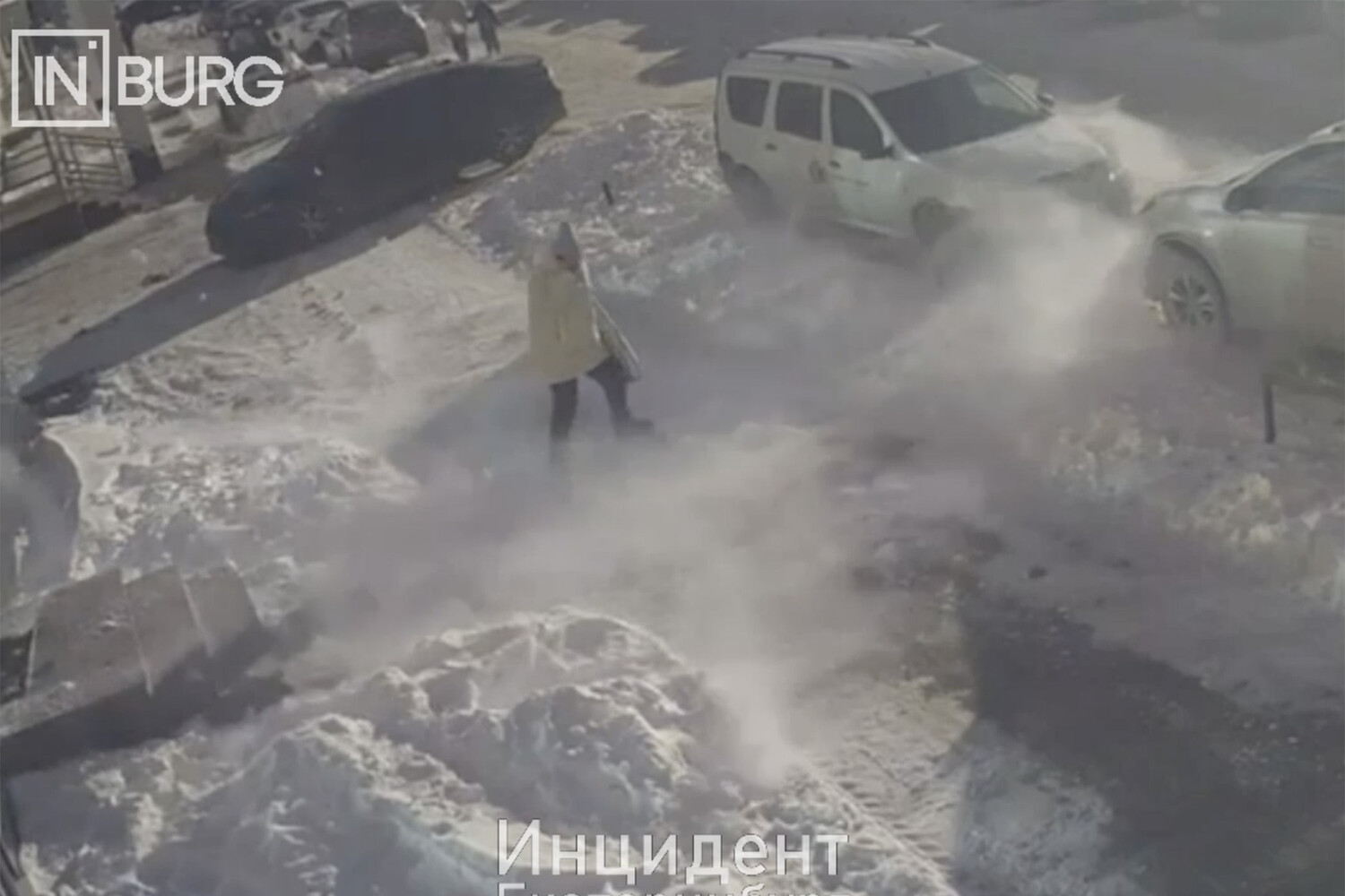 Инцидент произошел в Академическом районе. На кадрах с камер видеонаблюдения заметно, как местная жительница идет по дороге. В какой-то момент в шаге от нее падает снег и лед с крыши. Россиянка быстро отходит в сторону и выбирает другой путь.
