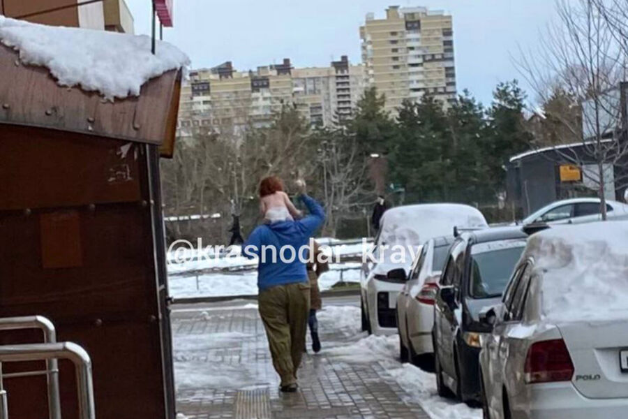 Инцидент произошел в Краснодаре. Очевидцы заметили на улице мужчину, одетого в куртку и штаны. На шее у него сидел маленький мальчик, на котором был только подгузник.