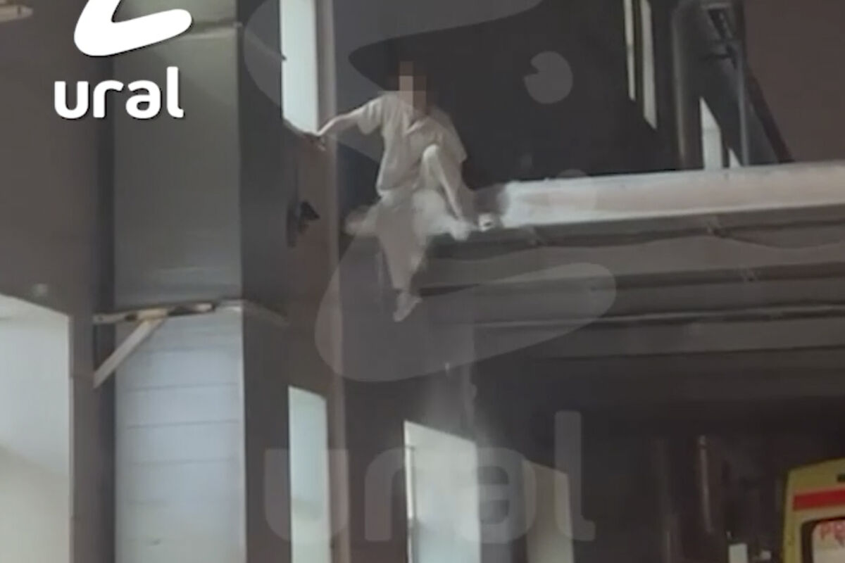 В Екатеринбурге мужчина сбежал из больницы, спрыгнув с высоты второго этажа, и попал на видео. Его опубликовал Telegram-канал Ural Mash.