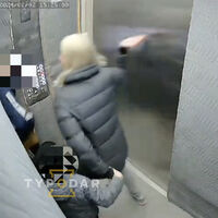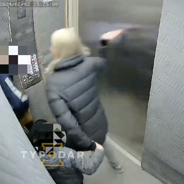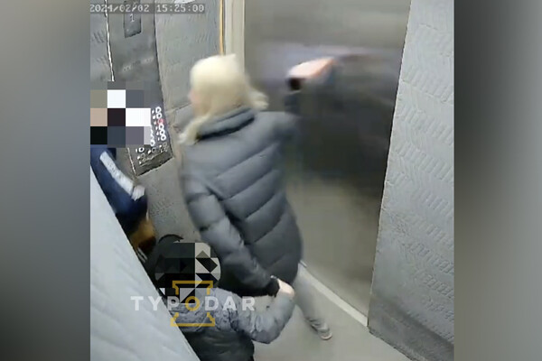 На кадрах женщина в серой куртке вместе с дошкольником заходят в лифт вслед за мальчиком. Когда двери закрываются, женщина начинает кулаками и ногами избивать чужого ребенка.