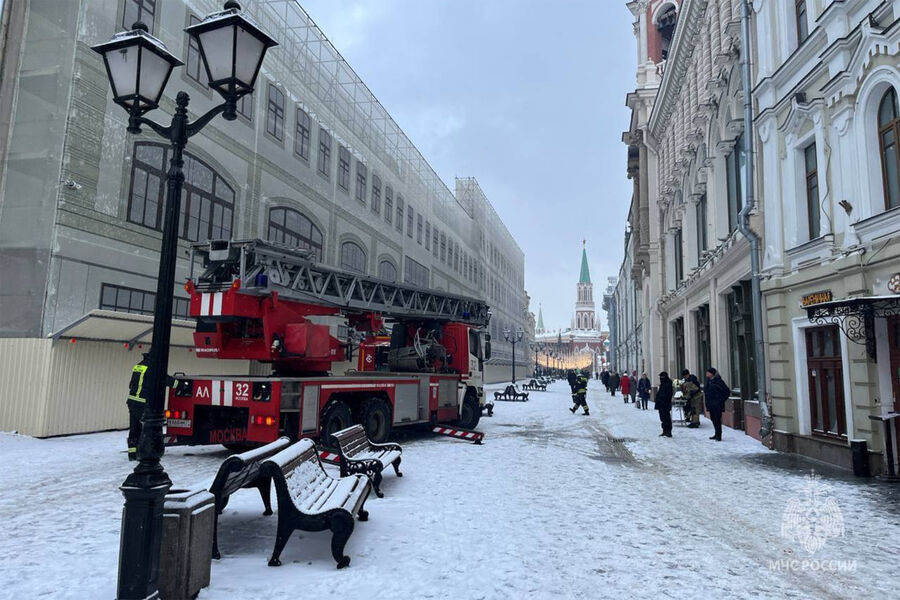 МЧС опубликовало кадры тушения пожара на Никольской в центре Москвы
