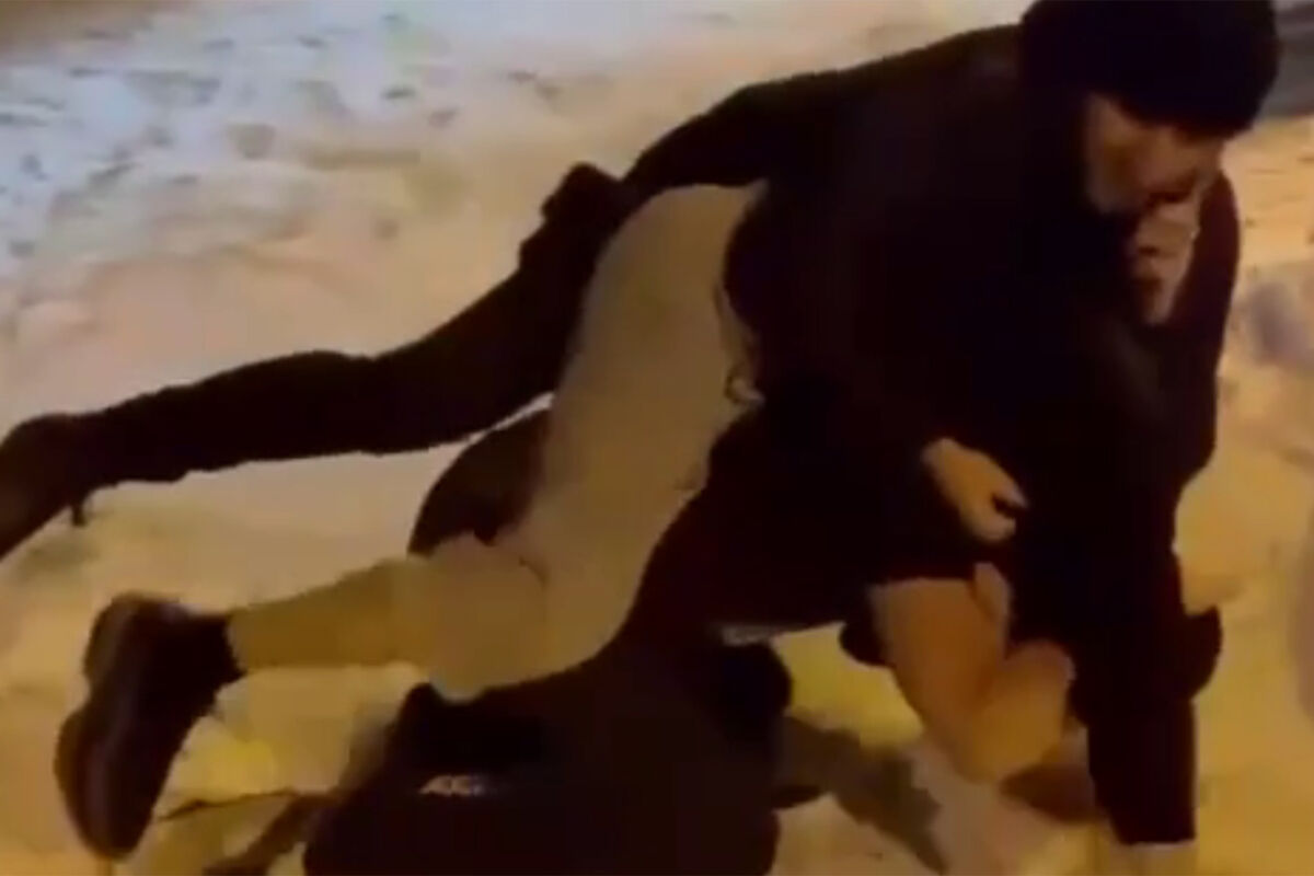 Очевидцы сняли на видео борющихся на земле мужчин и то, как неизвестный пытается душить бойца СВО. Женский голос за кадром пояснил, что напавший сам же и повредил машину бойца. Затем женщина срывается на крик и просит окружающих о помощи.