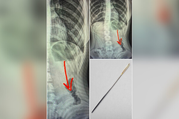 Инородное тело попало в пищевод во время изготовления поделки, ребенок занимался рукоделием, держа в этот момент зубами стальную швейную иглу, и в какой-то момент случайно проглотил острый предмет. Пострадавшего доставила в больницу бригада скорой помощи, в ходе обследования врачи обнаружили, что игла застряла в кишечнике.